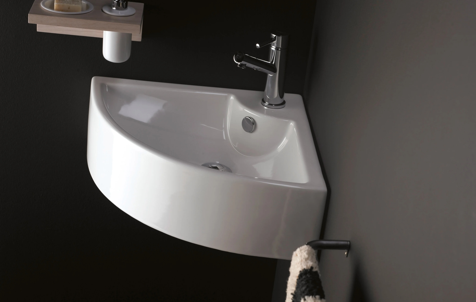 Bathco 0043 - Hjørnevægmonteret håndvask OPORTO 64,5x47 cm porcelæn/hvid