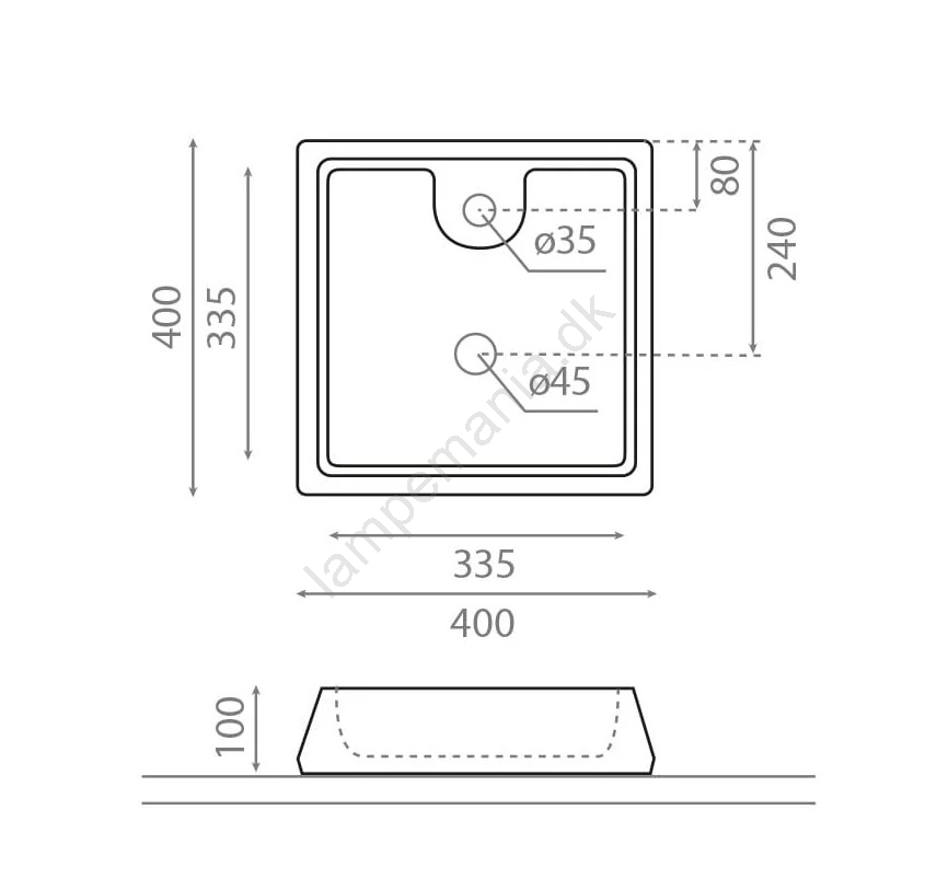 • Med hul til armatur.