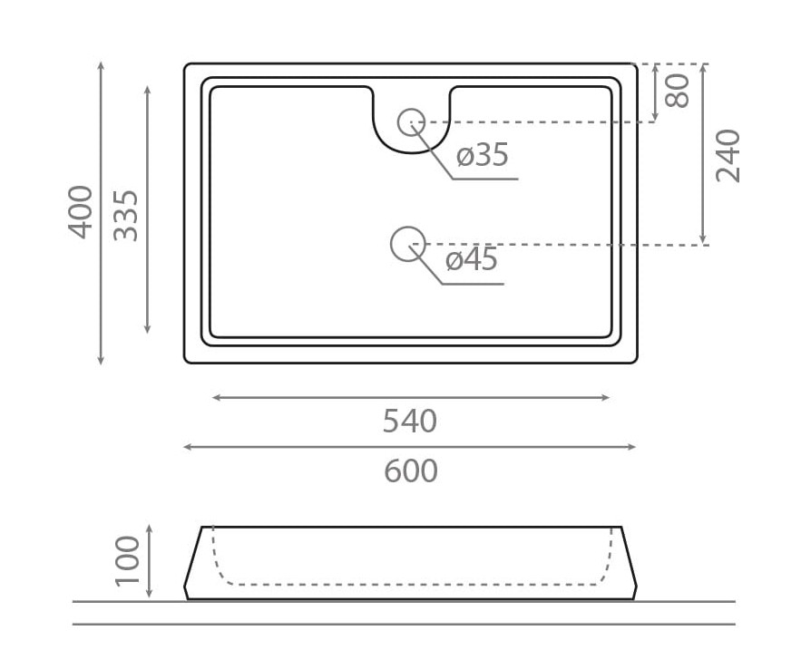 • Håndvasken kan monteres på bordplade eller på væg.