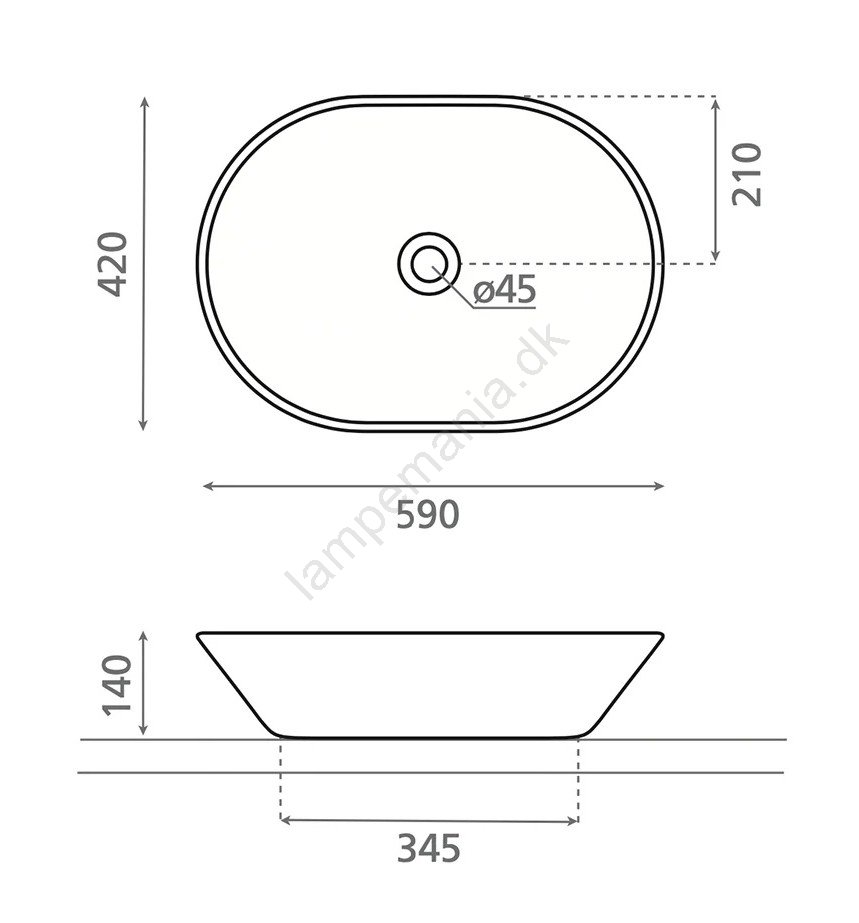 • Emballagen indeholder håndvasken uden sifon og armatur.