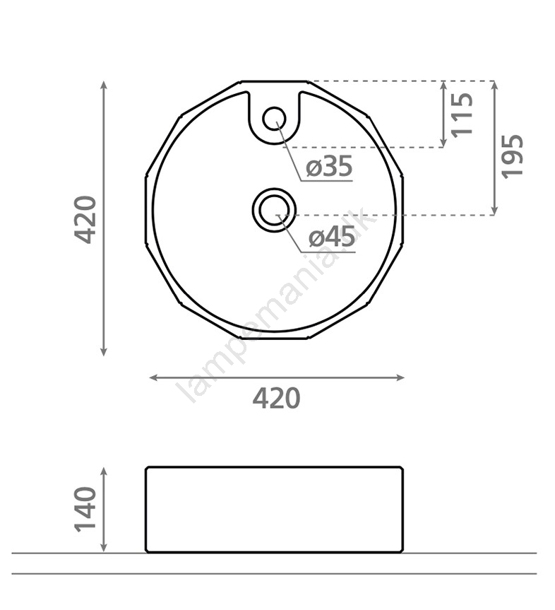 Bathco 4158 - CIRCUS vask til bordplade Ø 42 cm porcelæn/hvid