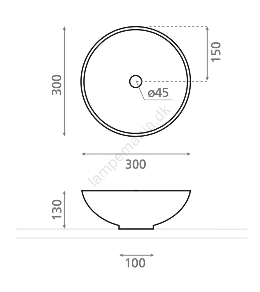 • Uden hul til armatur.