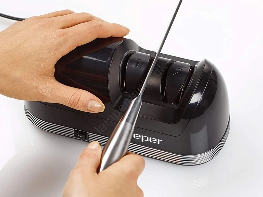 • Elektrisk tokammers knivsliber leveres i et elegant sort design.