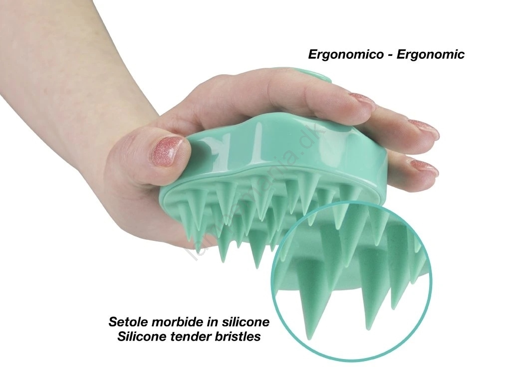 • Silikonebørsterne tilpasser sig hovedbunden perfekt.
