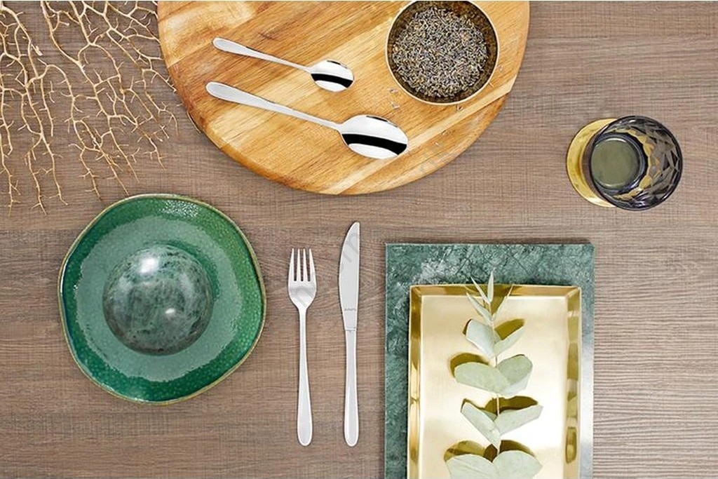 • Spisebestiksæt i rustfrit stål med blank kromfinish.