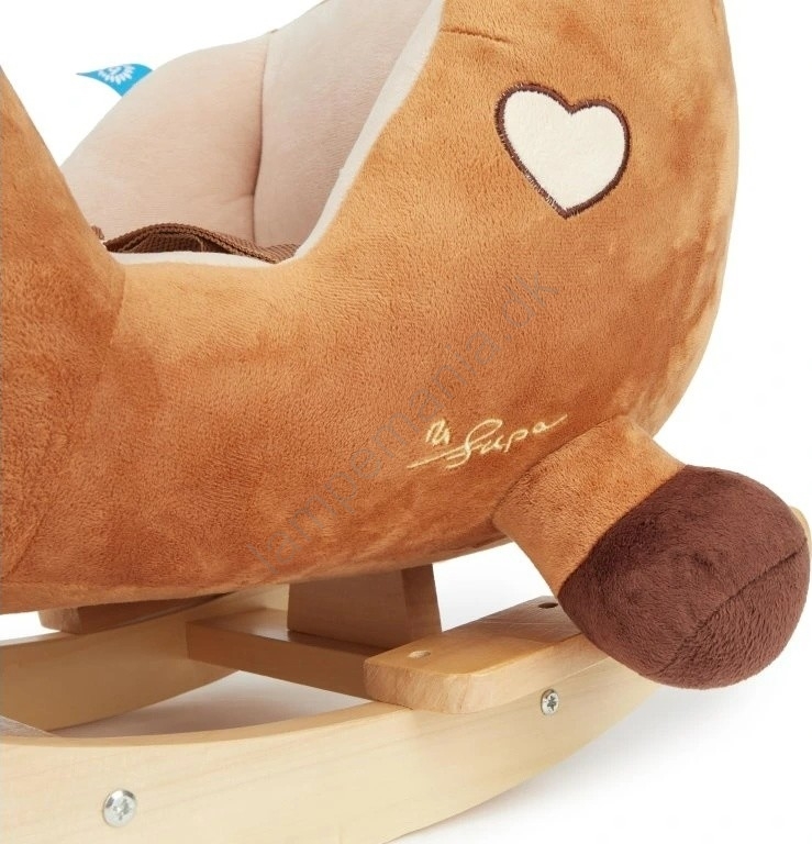 • Takket være det bløde plysmateriale og den solide træramme fremmer den motoriske færdigheder og giver masser af sikker sjov ved gyngeleg.