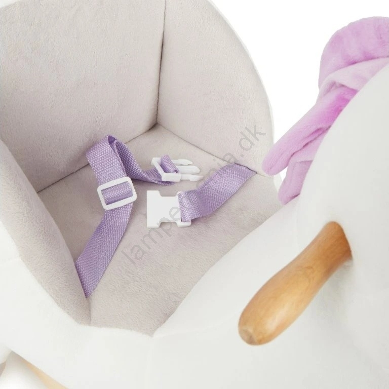 • Enhjørningen er udstyret med et blødt, behageligt polstret sæde med sikkerhedssele, som sikrer maksimal komfort og beskyttelse, selv for de mindste børn.