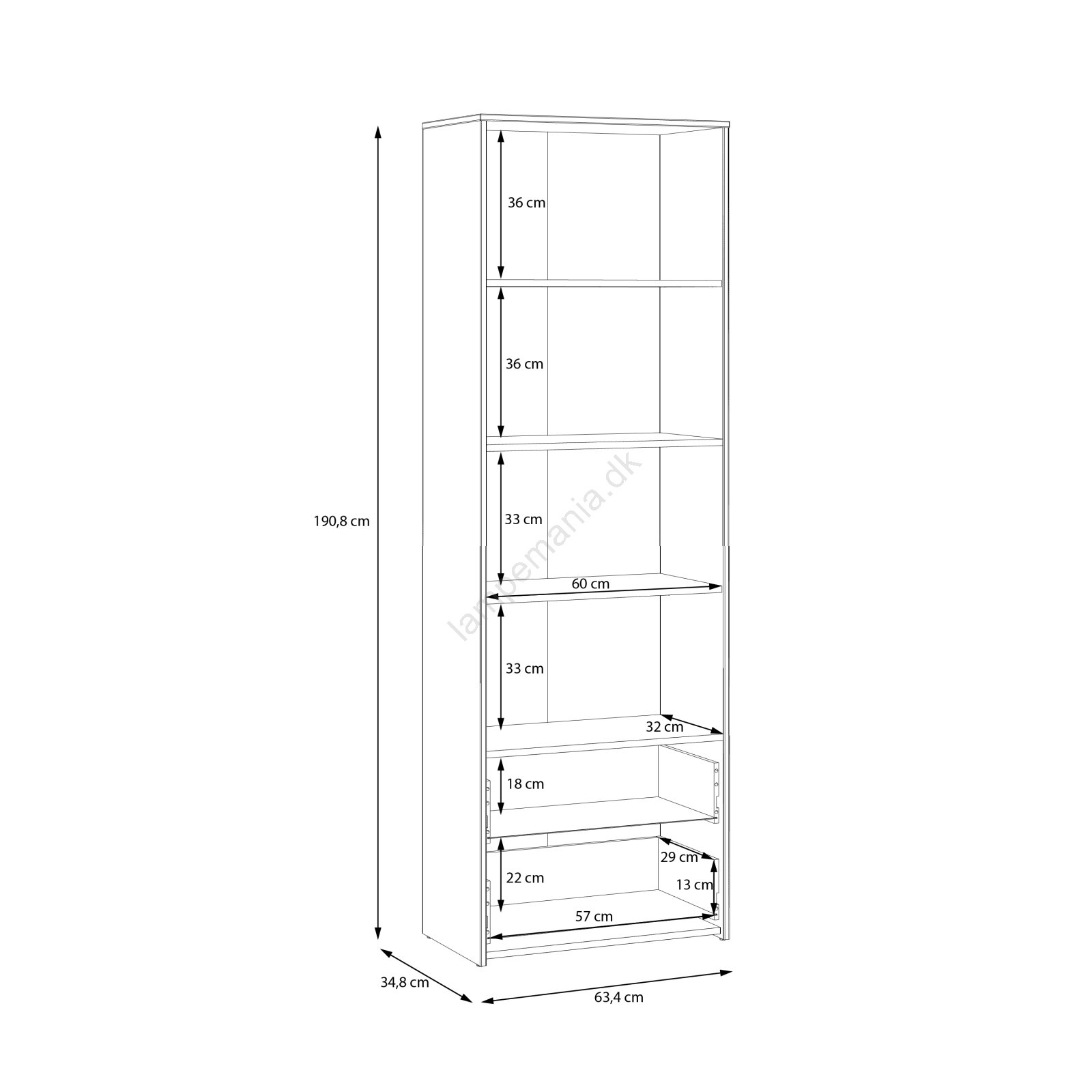 • Med skuffer og hylder tilbyder den generøs opbevaringsplads til organisering af dagligdagens ejendele.