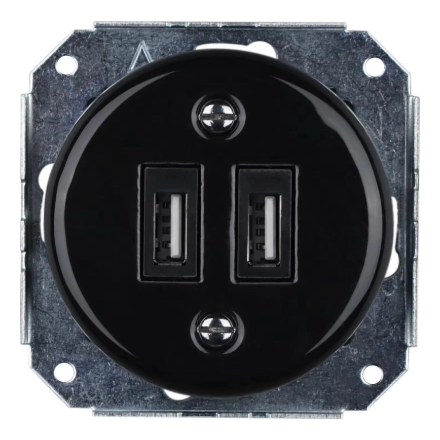 Bohemia-Design - Porcelæns-retro USB-vægudtag uden ramme 2x USB-A sort
