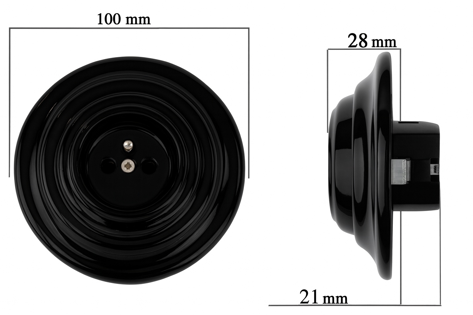 Bohemia-Design - Retro porcelænsstikkontakt til bolig med ramme 250V/16A, sort