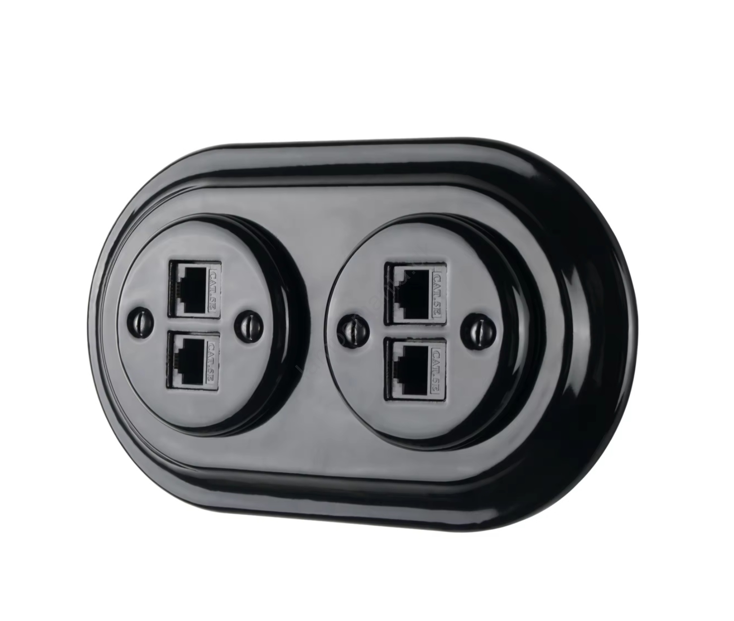 Bohemia-Design - Retro Ethernet-udtag i porcelæn med ramme 2xCAT.5E, sort