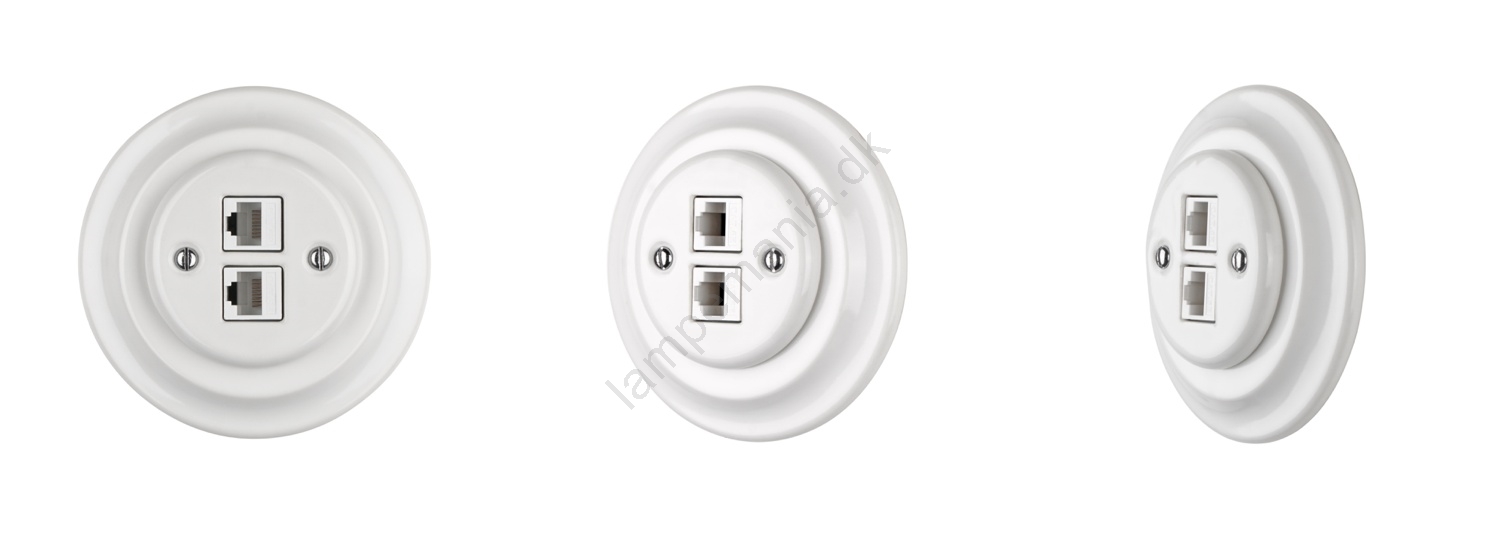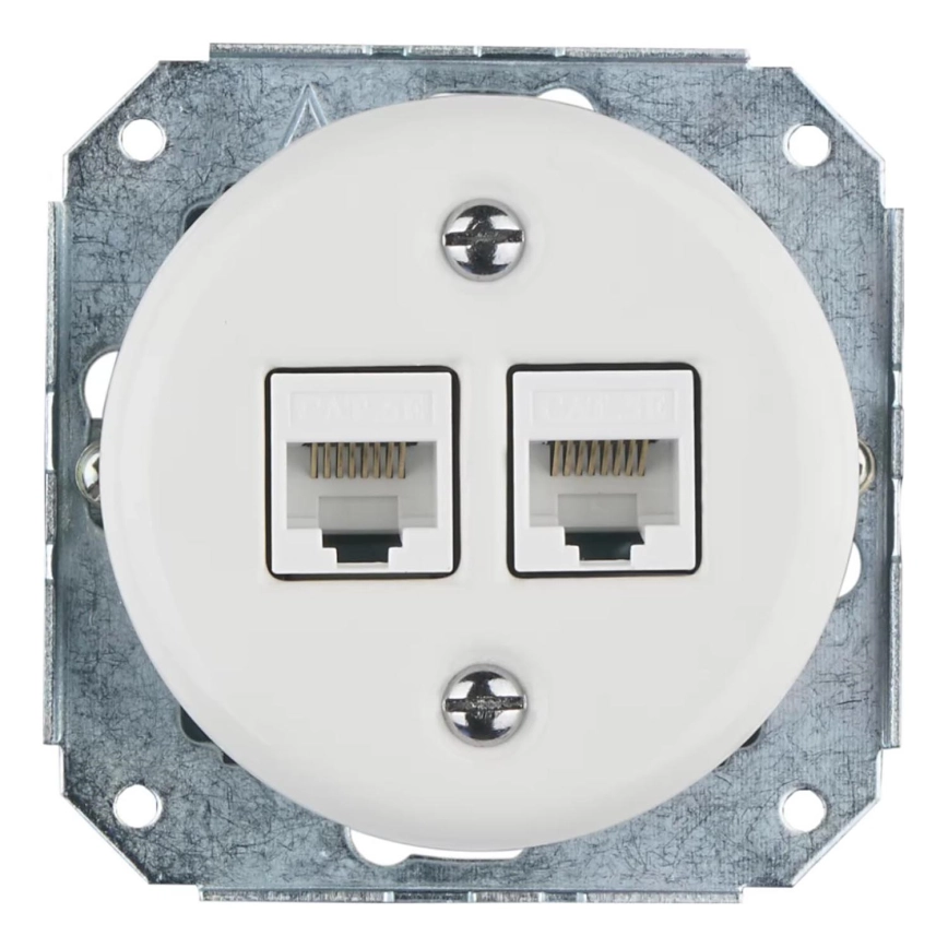 Bohemia-Design - Porcelæns-retro Ethernet-udtag uden ramme 2x CAT.5E hvid
