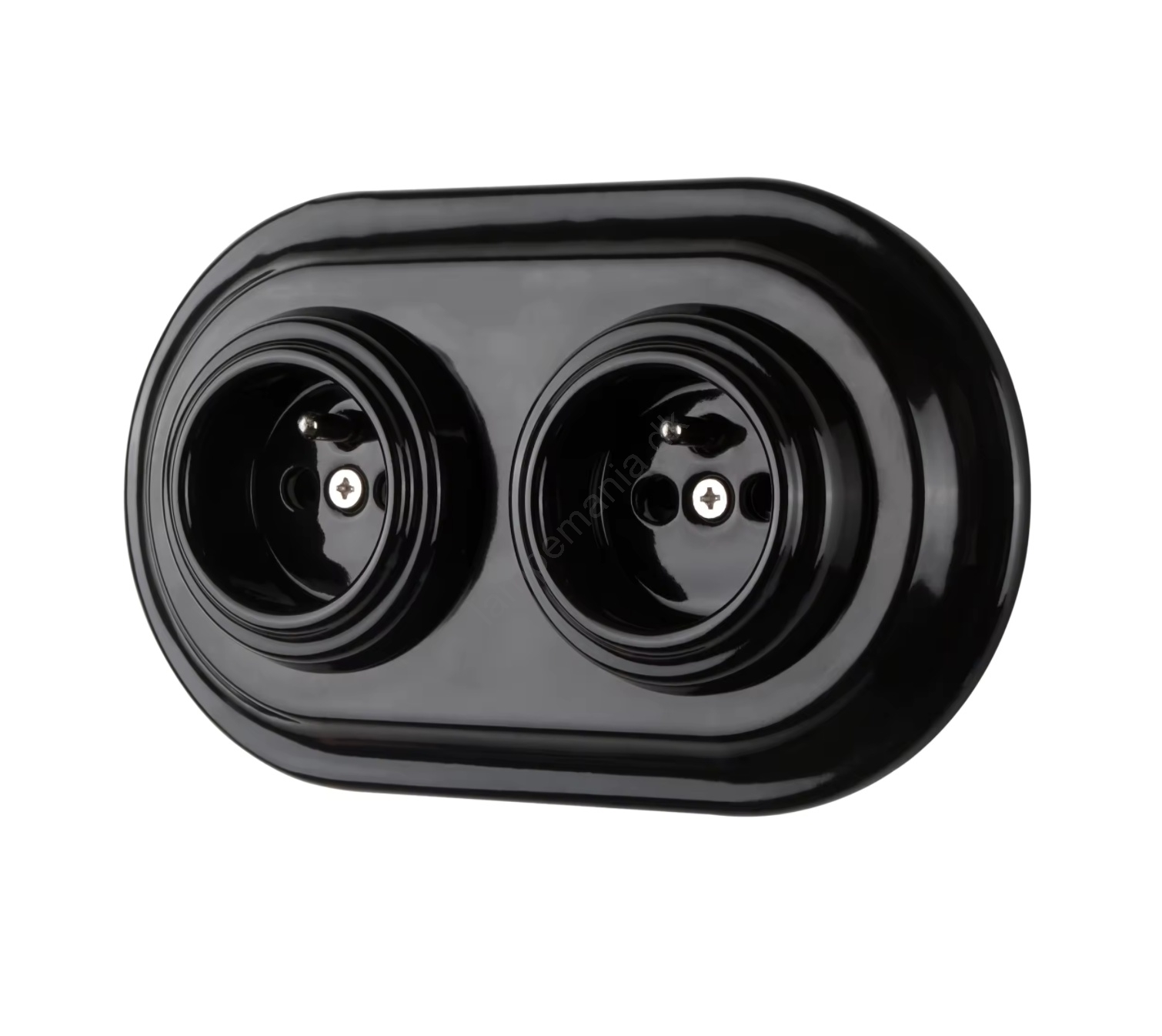 Bohemia-Design - Porcelæns-retro stikkontakt til bolig uden ramme 250V/16A sort