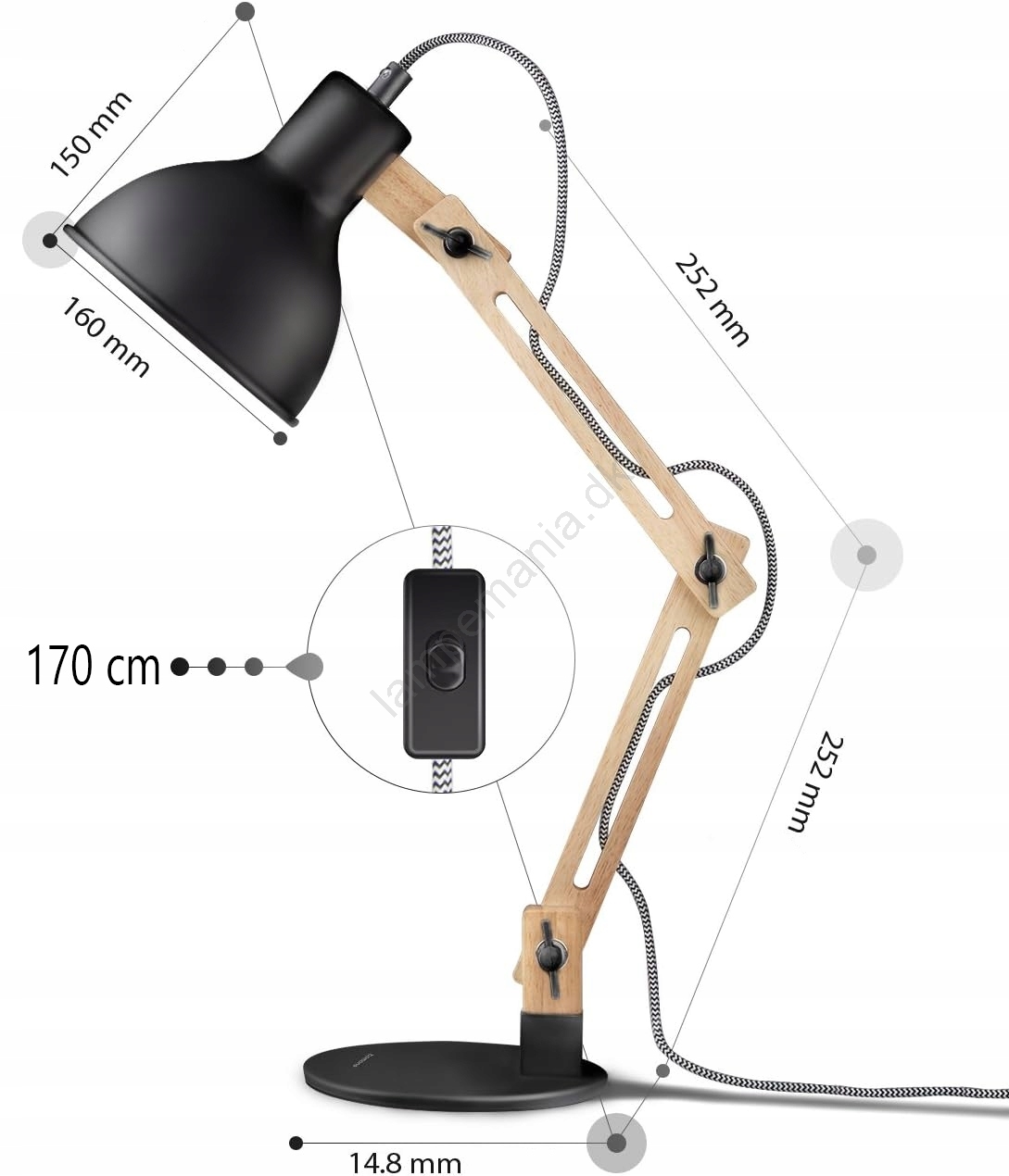 Bordlampe 1xE27/40W/230V sort er kendetegnet ved et flot og funktionelt design.  En lyspære med E27-fatning passer til denne lampe. Her kan du købe andre pærer til fordelagtige priser. Du får en interessant tilføjelse til dit hjem.