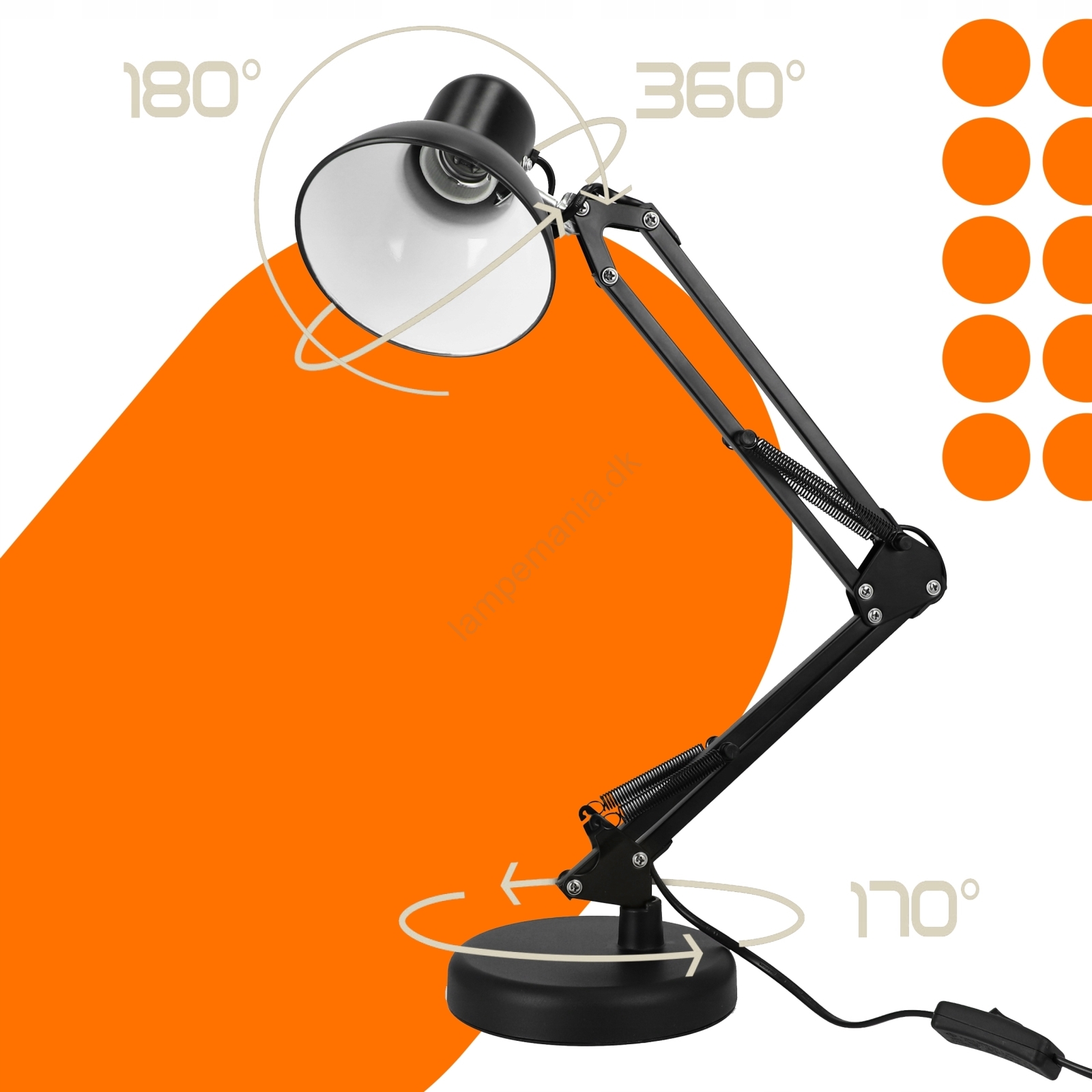 Bordlampe med klemme 2-i-1 1xE27/60W/230V sort