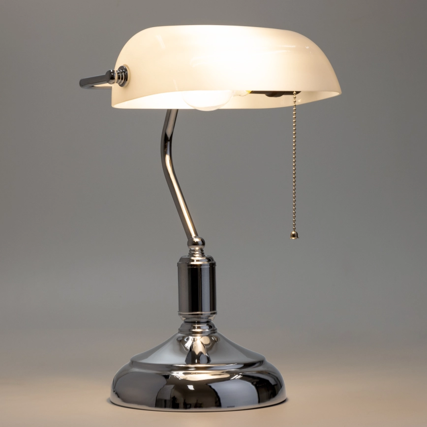 • Brilagi - Bordlampe BANK OFFICE 1xE27/60W/230V blank krom/hvid
