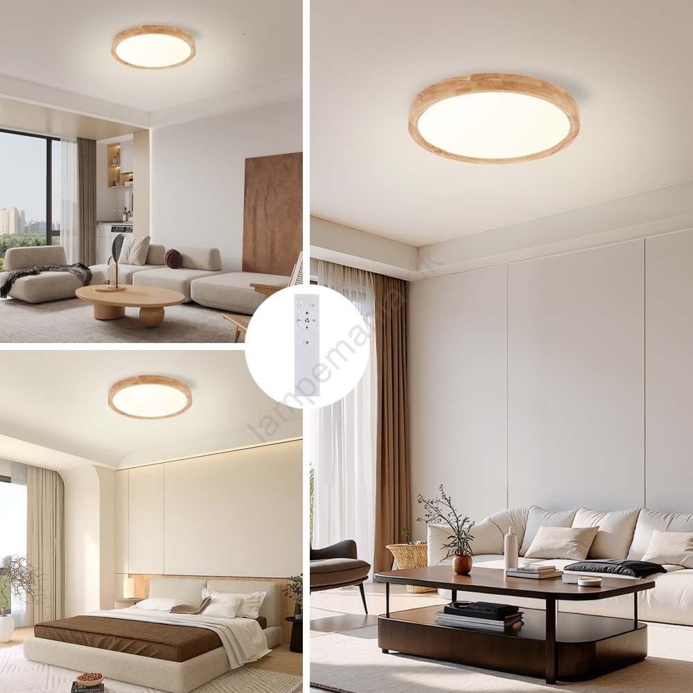 Brilagi - LED Dæmpbar loftlampe WOODROUND LED/30W/230V 3000-6000K Ø 40 cm træ CRI 90 + fjernbetjening