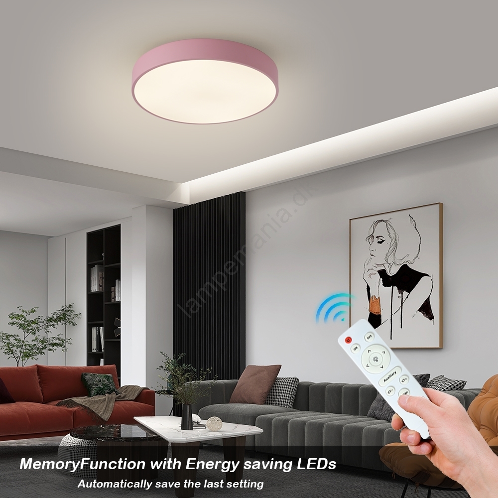 • LED-loftlampe, som kan betjenes bekvemt med fjernbetjening.