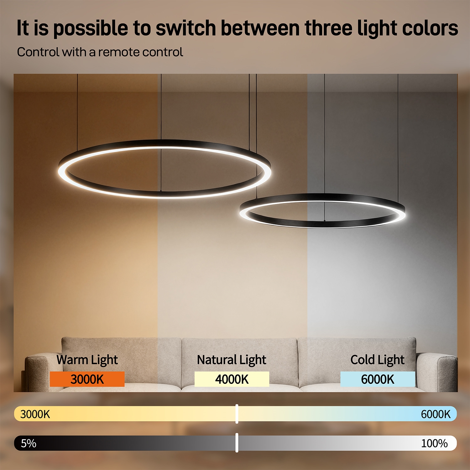 • Brilagi - LED-dæmpbar pendel med wireophæng PORTOFINO LED/98W/230V 3000-6000K hvid + fjernbetjening