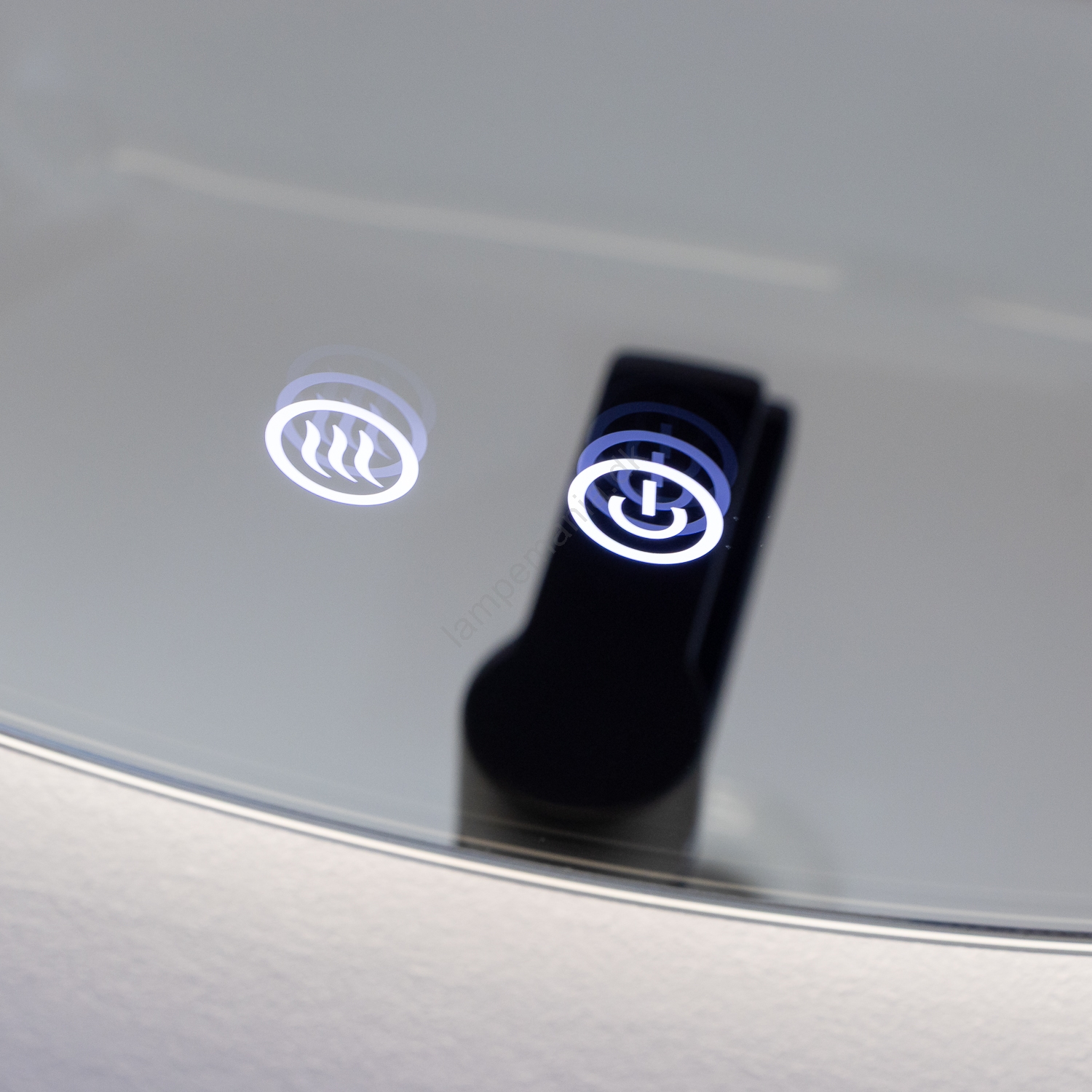• Rammeløst badeværelsesspejl med indbygget anti-dug opvarmning og LED-belysning.