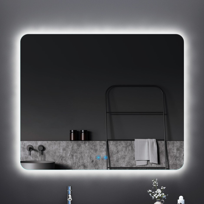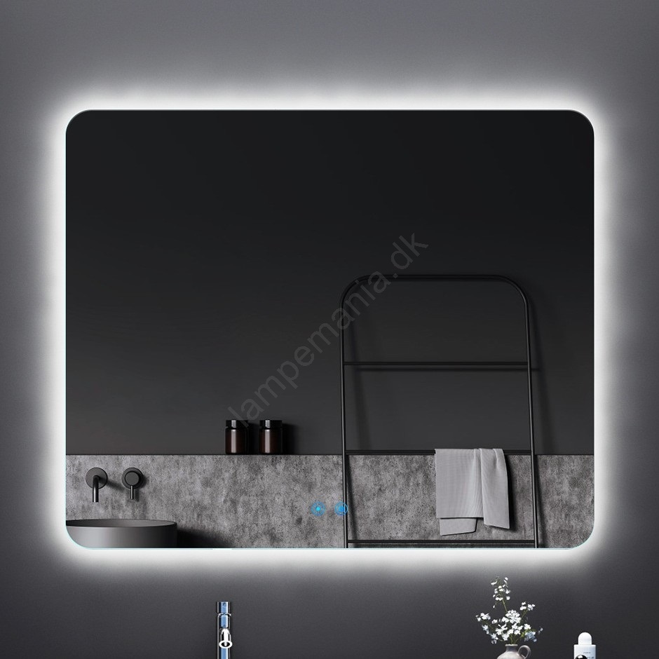 • Rammefrit badeværelsesspejl med indbygget anti-dug varmefunktion og LED-belysning.