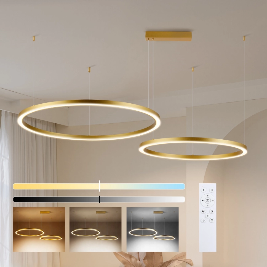 • Brilagi - Dæmpbar LED-pendel på wire PORTOFINO LED/98W/230V 3000-6000K guld + fjernbetjening