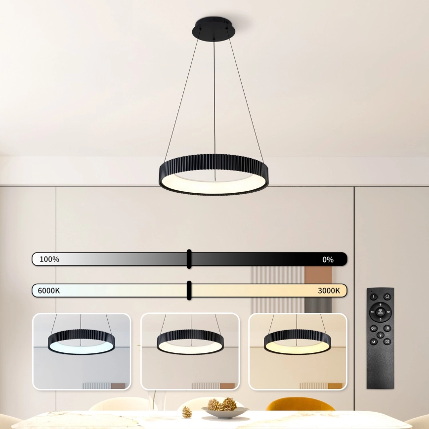 Brilagi - LED dæmpbar pendel med wire FALCON MODERN LED/30W/230V 3000-6500K Ø 40 cm sort + fjernbetjening