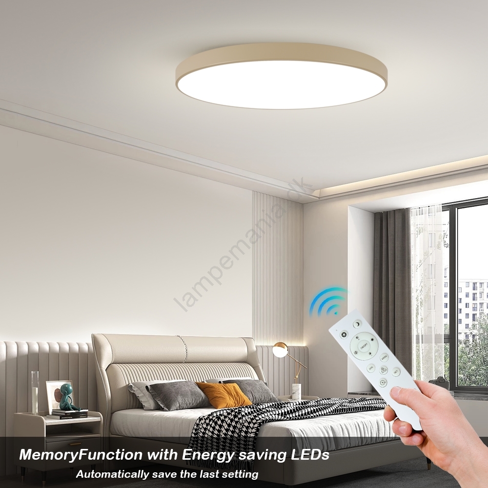 • LED loftlampe, som nemt kan betjenes med fjernbetjening eller via mobiltelefon.