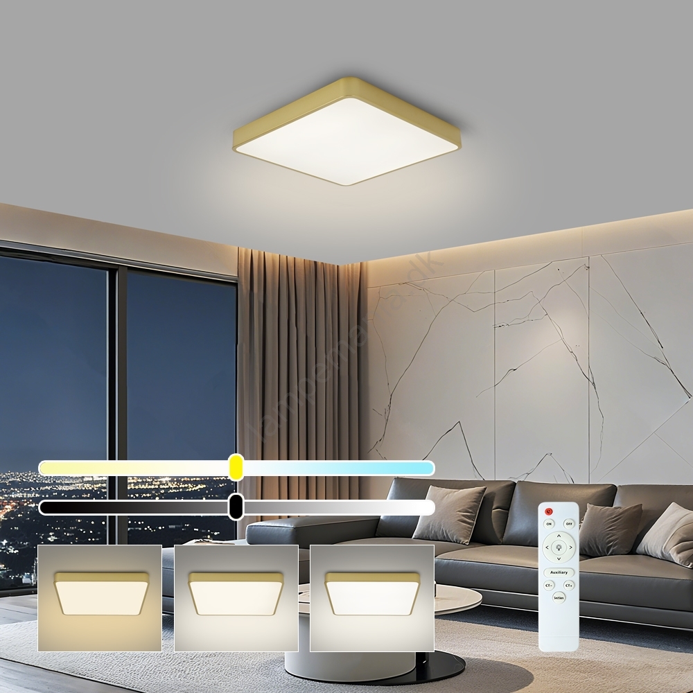 • LED-loftlampe, der bekvemt kan betjenes med fjernbetjening.
