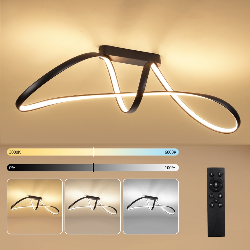 • Brilagi - LED dæmpbar overflademonteret loftlampe TWISTER LED/60W/230V 3000-6000K sort + fjernbetjening