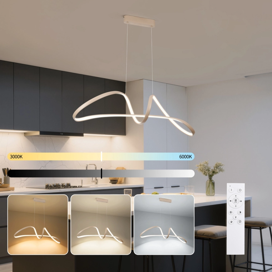 Brilagi - LED dæmpbar pendel med wireophæng TWISTER LED/60W/230V 3000-6000K beige + fjernbetjening