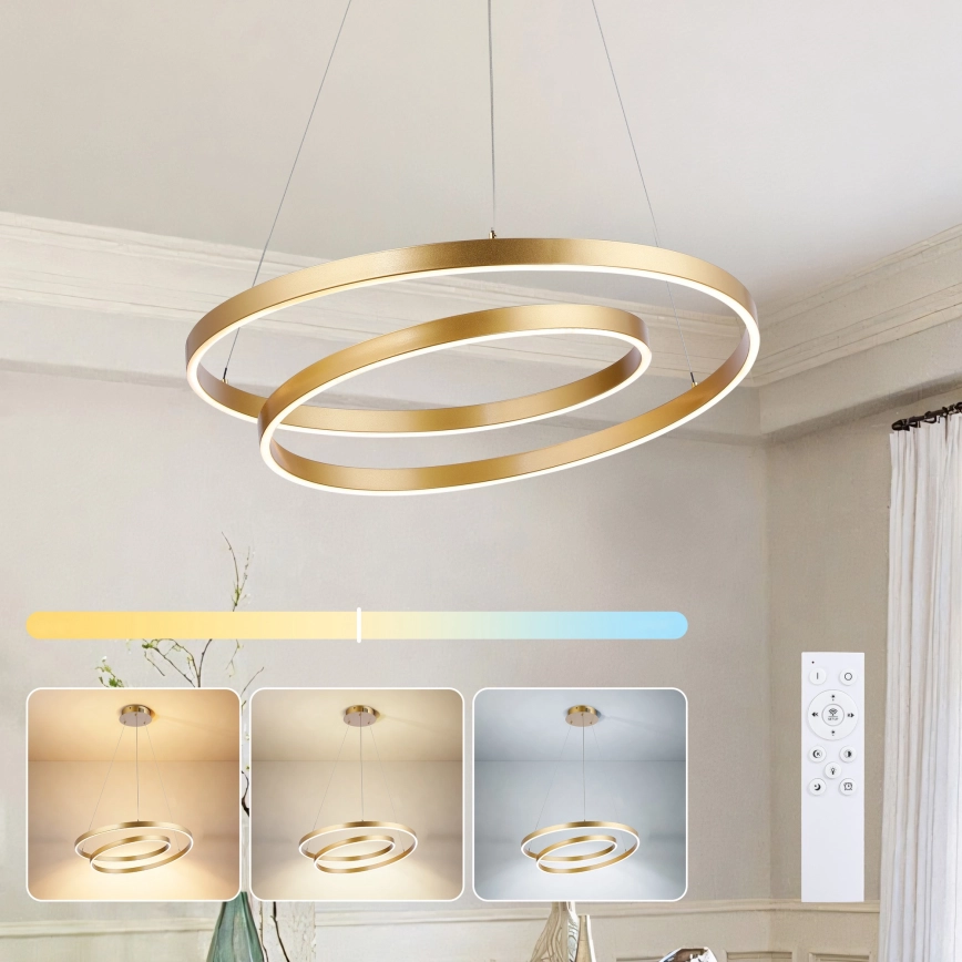 • Brilagi - Dæmpbar LED-pendel på wire TWISTER LED/48W/230V 3000–6000K Ø 50 cm guld + fjernbetjening