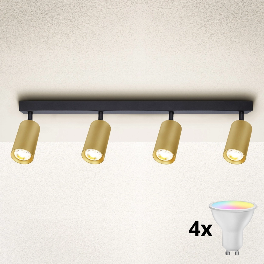 Brilagi - LED RGBW dæmpbar spotarmatur SELE GOLDEN 4xGU10/4,8W/230V 3000K sort/guld + fjernbetjening