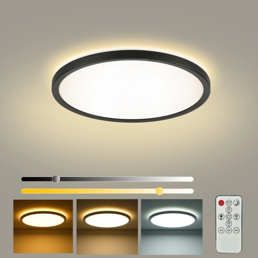 • Brilagi - Dæmpbar LED-loftlampe ULTRA SLIM LED/18W/230V 2700-6500K Ø 30 cm sort + fjernbetjening