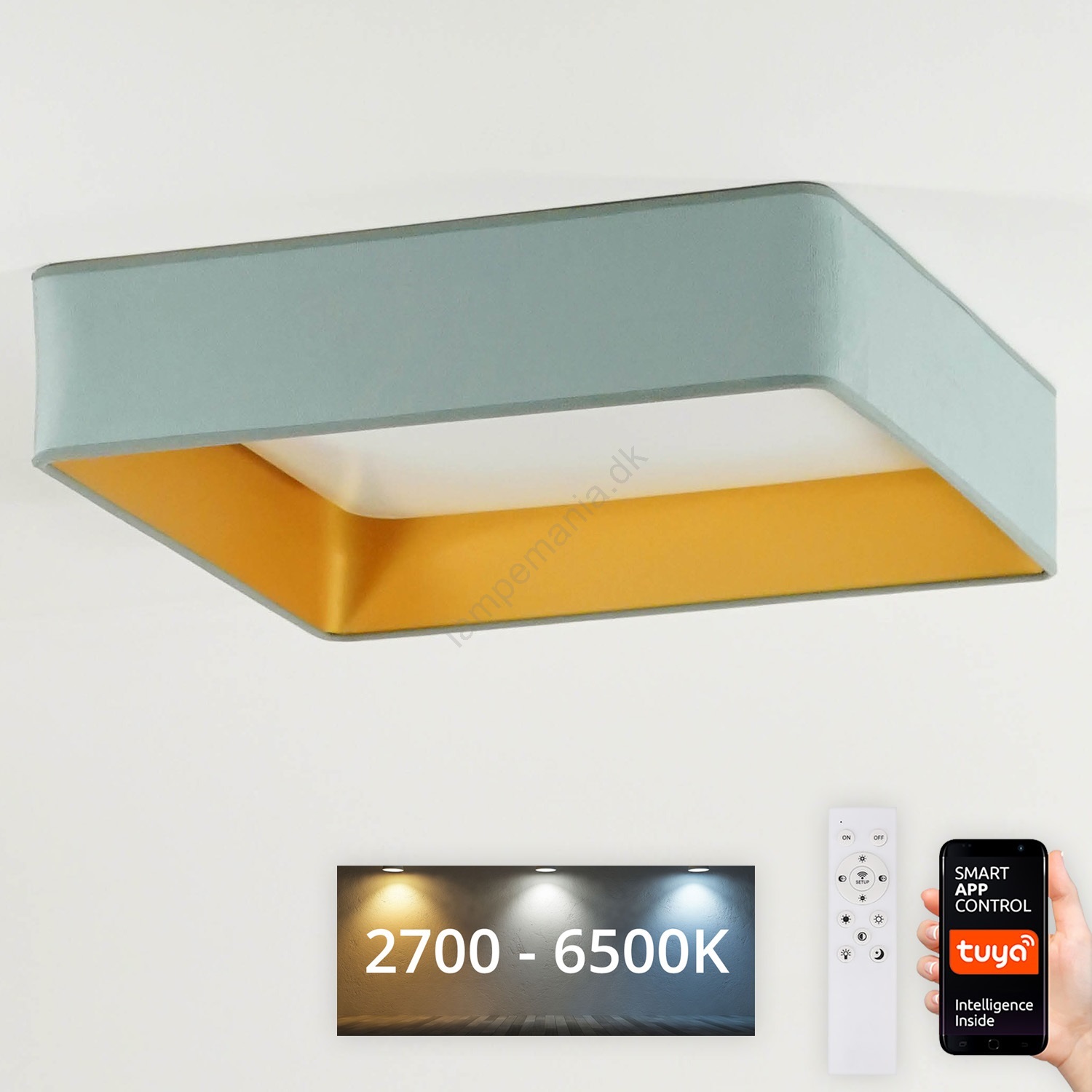 • Brilagi - LED dæmpbar loftlampe VELVET SQUARE SMART LED/36W/230V 60x60 cm 2700-6500K Wi-Fi Tuya + fjernbetjening mintgrøn
