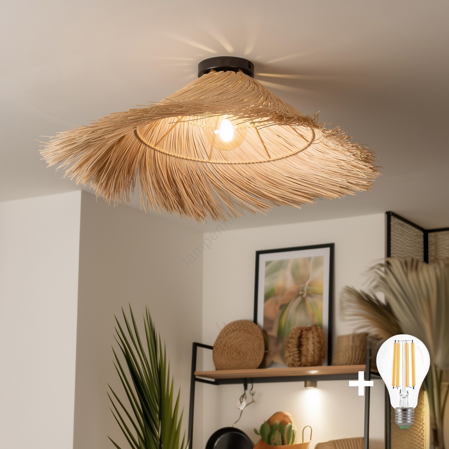 Brilagi - LED overflademonteret loftlampe CERIA BOHO 1xE27/40W/230V Ø 70 cm rattan
