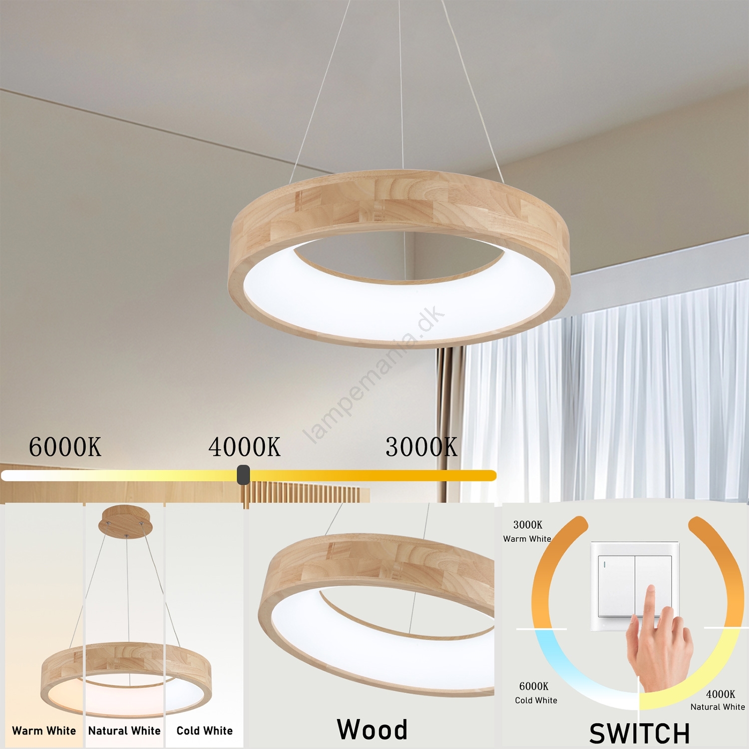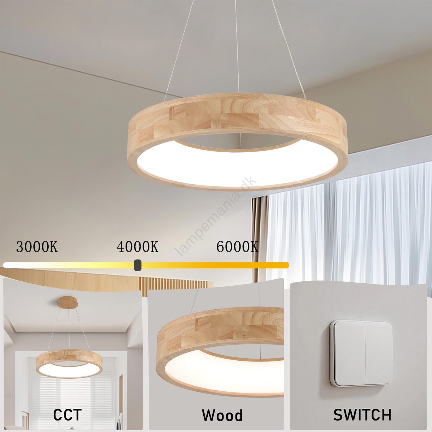 Brilagi - LED-pendel på wire FALCON WOOD LED/30W/230V 3000/4000/6000K Ø 45 cm træ