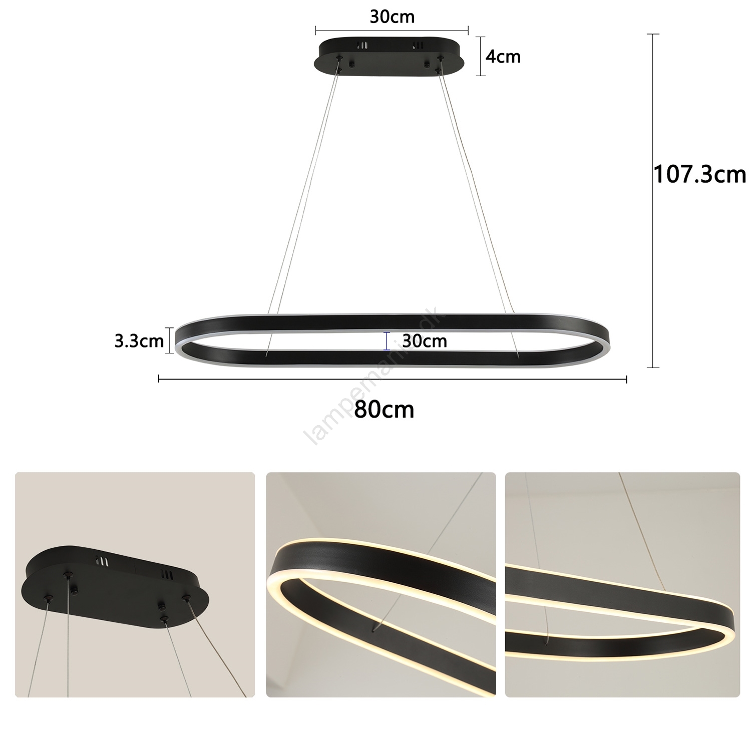 Brilagi - LED-pendel på wire PONDIE LED/43W/230V 80x30 cm sort
