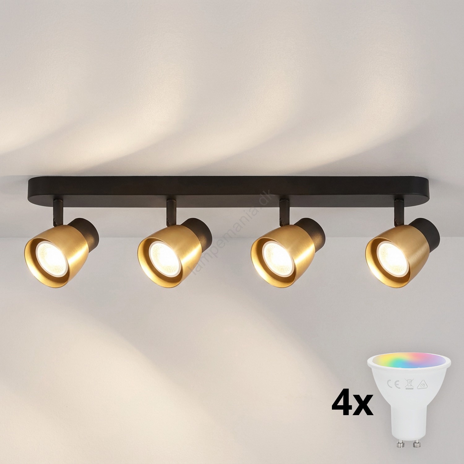 Brilagi - LED RGBW dæmpbart spotarmatur NUGGET 4xGU10/6W/230V 3000K sort/guld + fjernbetjening