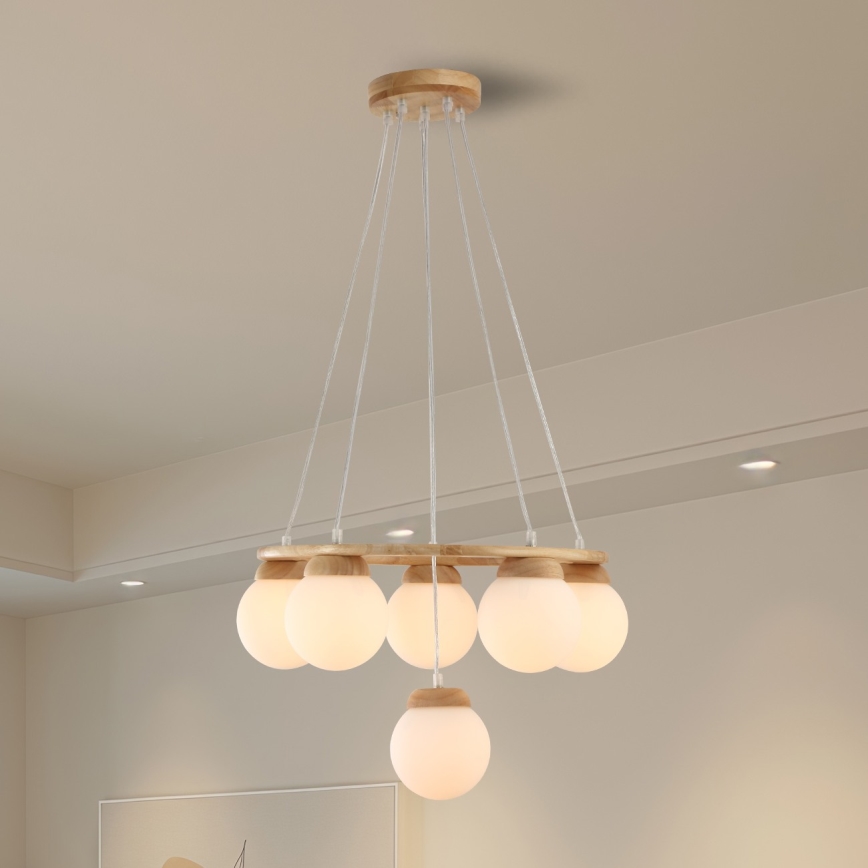 Brilagi - Lysekrone med kabel VISBY WOOD 6xE27/60W/230V Ø 58 cm, gummitræ