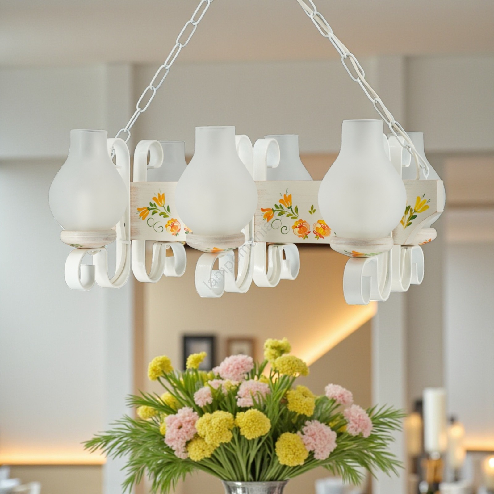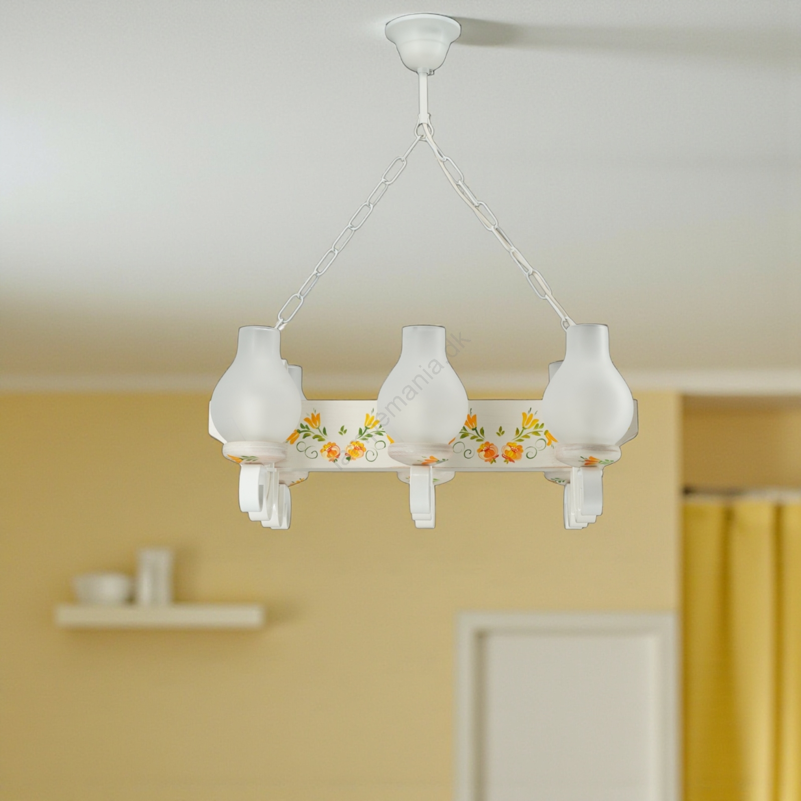 Brilagi - Lysekrone med kæde QUEEN 6xE14/40W/230V bøg/cremefarvet