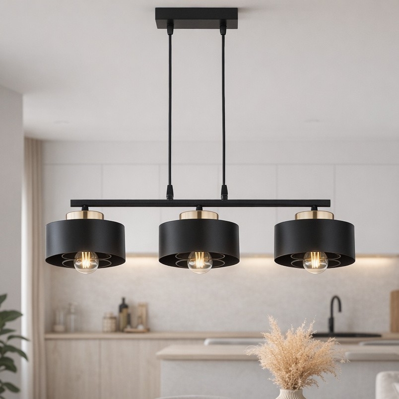 Brilagi - Lysekrone med wireophæng 3xE27/60W/230V sort/guld
