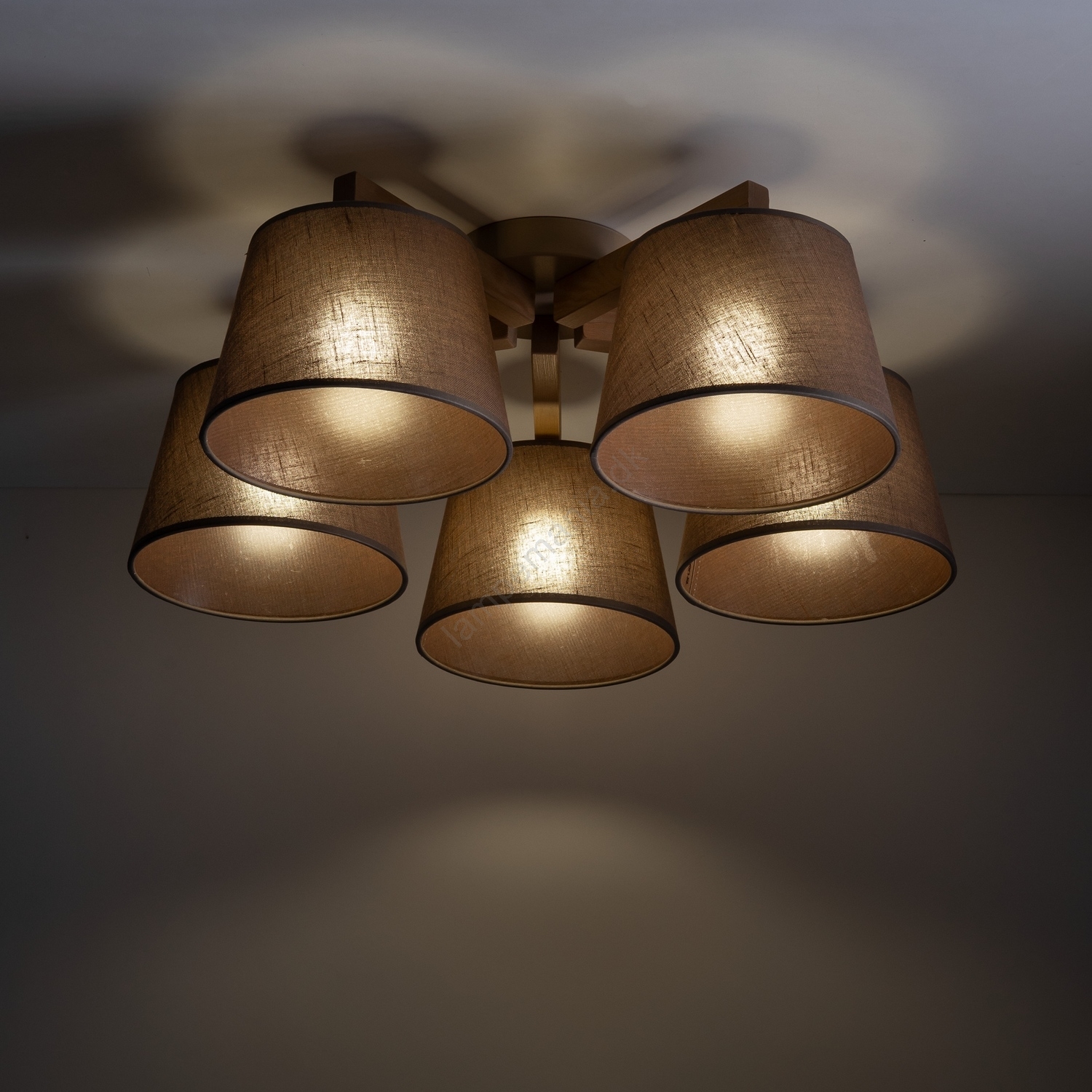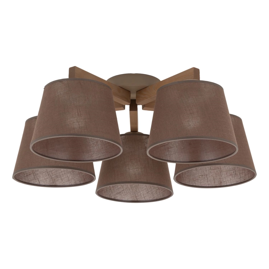Brilagi - Overflademonteret loftlampe LATTE SABIA 5xE27/15W/230V fyrretræ/brun