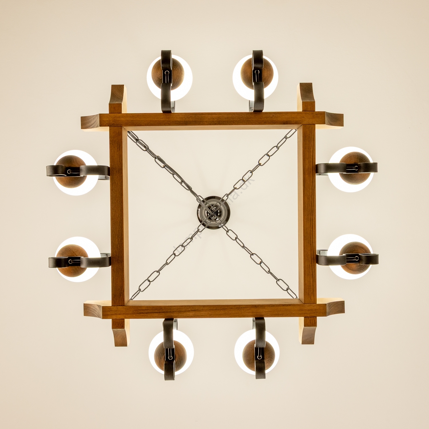 • Brilagi - Pendel med kædeophæng QUEEN 8xE14/40W/230V bøg/valnød