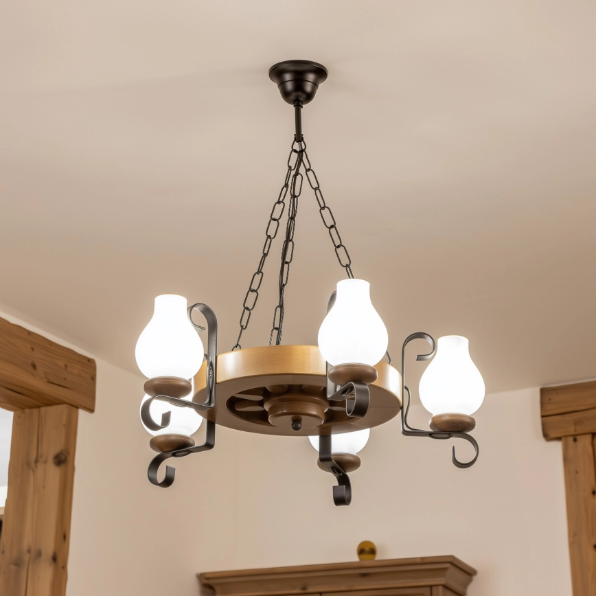 Brilagi - Lysekrone med kæde ROATA 5xE14/40W/230V Ø 50 cm bøg/valnød er kendetegnet ved et flot og funktionelt design.  En lyspære med E14-fatning passer til denne lampe. Her kan du købe andre pærer til fordelagtige priser. Du får en interessant tilføjelse til dit hjem.