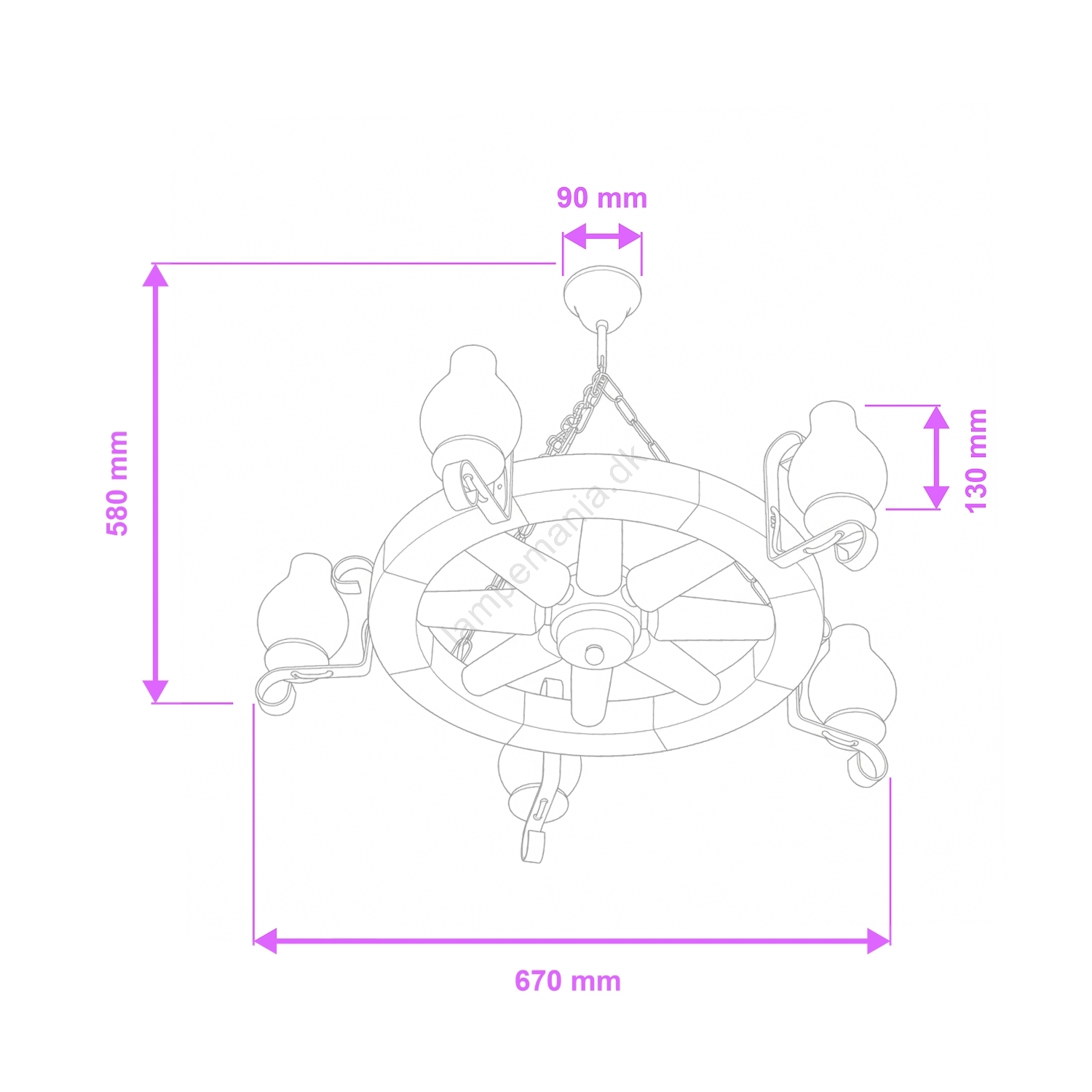 • Brilagi - Lysekrone med kæde ROATA 5xE14/40W/230V Ø 70 cm bøg