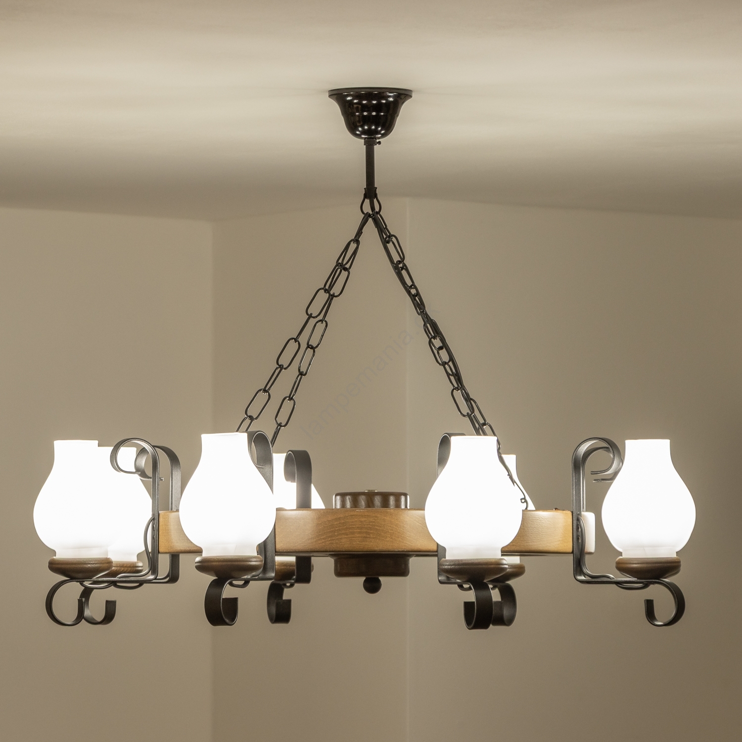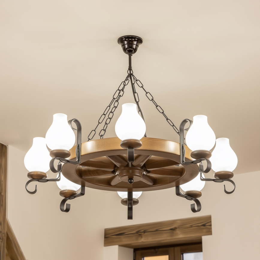 Brilagi - Lysekrone på kæde ROATA 8xE14/40W/230V Ø 70 cm bøg/valnød