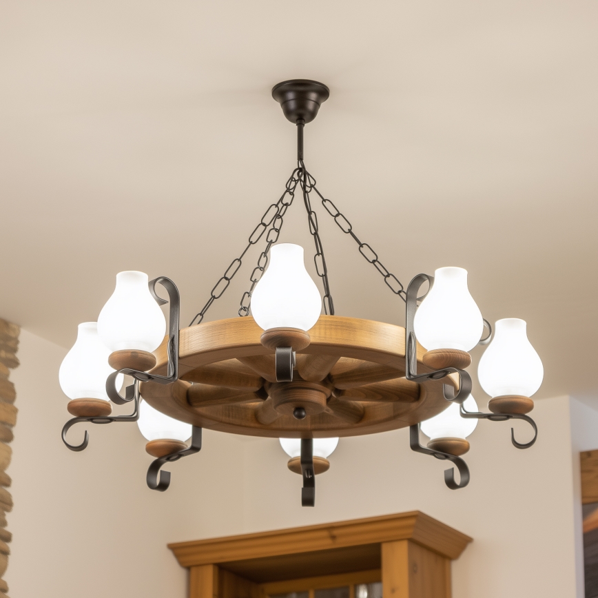 Brilagi - Lysekrone med kæde ROATA 8xE14/40W/230V diameter 70 cm bøg