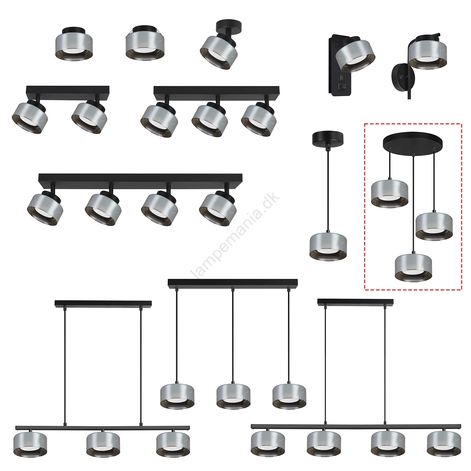 Brilagi - LED Pendel med wire AURA LUX 3xGX53/30W/230V sort/røget