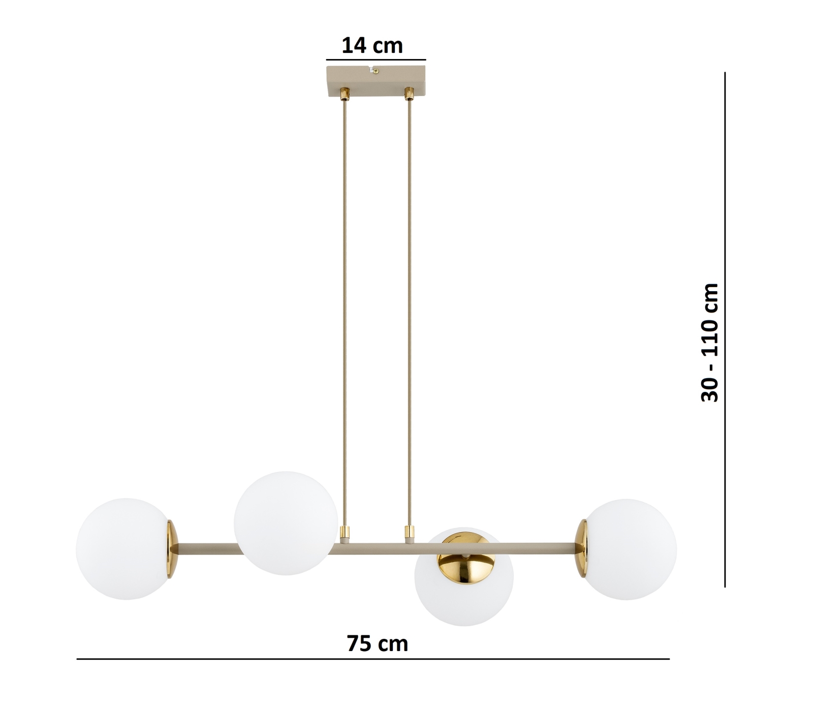 Brilagi - Pendel på kabel 4xE27/60W/230V beige/guld